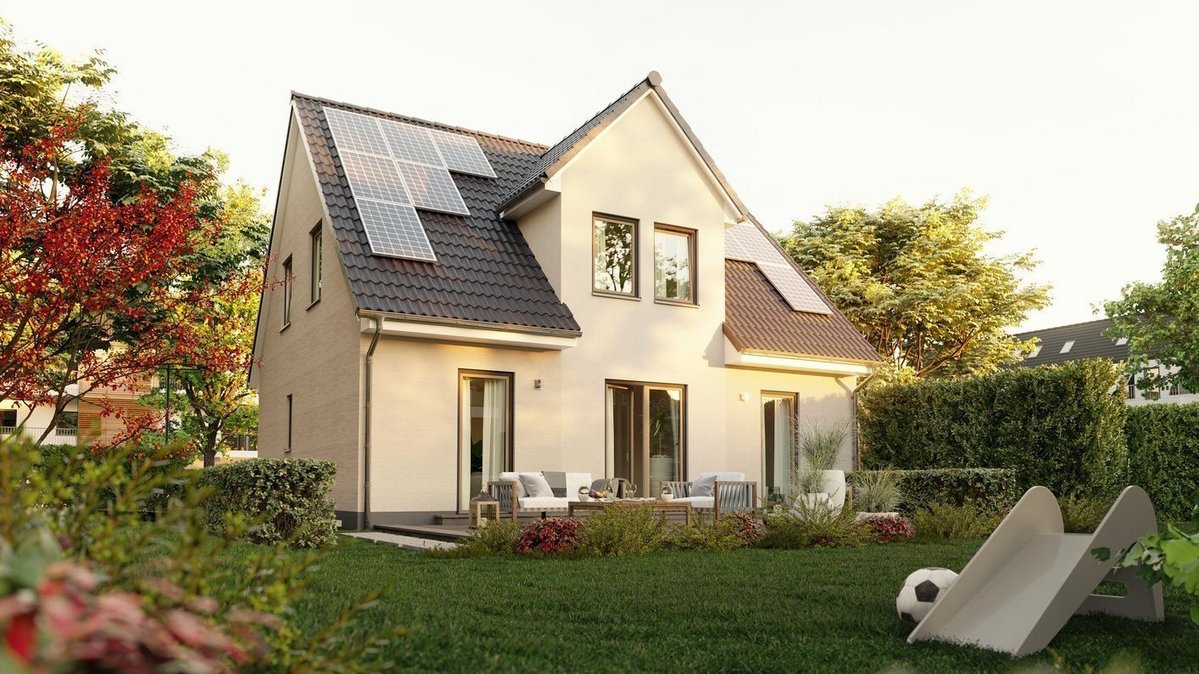 Viele Bauherren in ländlichen Gebieten entscheiden sich für das zeitlose Einfamilienhaus mit Satteldach. Auf zwei Geschossen (EG und ausgebautem Dachgeschoss) bietet es reichlich Platz für Familien. Optisch fügt sich ein solches Haus hervorragend in die Dorfkulisse ein - ob mit rotem Backstein oder hellem Putz, mit Friesen-Giebel oder Gaube als Akzent. Im Baugebiet Buschkoppel können Sie Ihr Einfamilienhaus z.B. so ausrichten, dass der Wohnbereich zum Garten zeigt und Sie den ländlichen Ausblick voll auskosten.