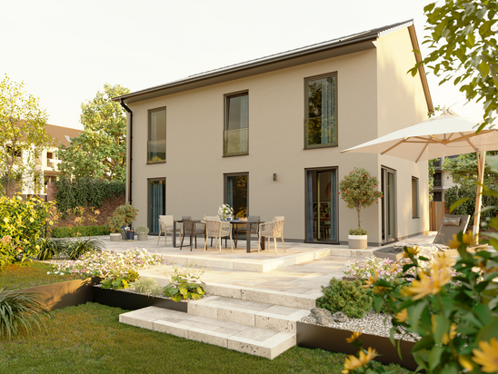 - Familienfreundliche Stadtvilla: Als Stadtvilla bezeichnet man einen quadratischen, zweigeschossigen Haustyp - ideal für alle, die viel Wohnraum benötigen. Eine Stadtvilla bietet volle zwei Vollgeschosse ohne Dachschrägen, was die Möblierung erleichtert und jedem Familienmitglied sein eigenes Reich ermöglicht. In Neukirchen kann eine solche Villa mit heller Putzfassade und stilvollen Details modern und dennoch ortsangepasst wirken. Der Charme: Sie vereint städtisches Wohngefühl (viel Platz und repräsentative Optik) mit dem Luxus der Ruhe und Natur vor der Haustür.