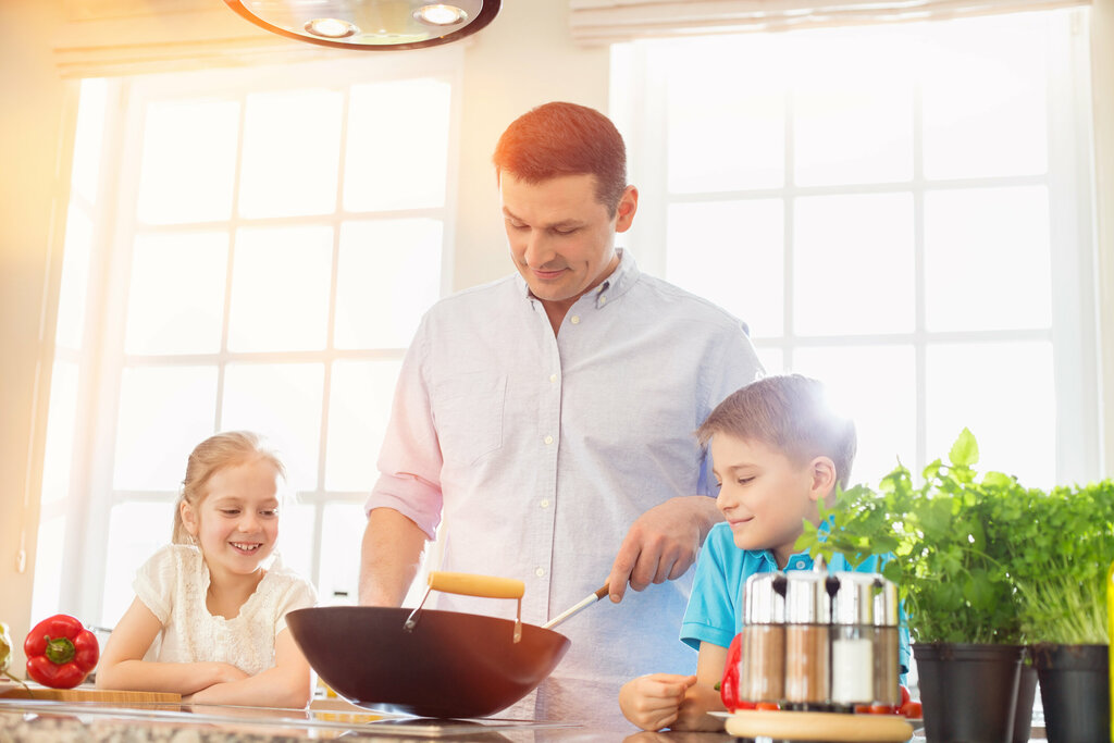 In der Küche mithelfen ist alles! Und es ist mehr als die Unterstützung durch die Kleinen: Gemeinsames Kochen stärkt das Miteinander in der Familie. Kinder lernen so die Lebensmittel kennen und erfahren den Umgang in der Zubereitung von Mahlzeiten. Mit Kindern zusammen zu kochen macht nicht nur Spaß, sondern auch Lust auf das anschließende Essen.