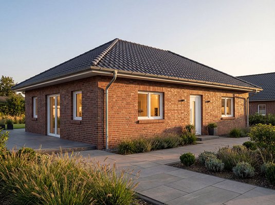 Klinkerhaus bauen - das gehört im Norden einfach dazu. Der rote Verblendstein an der Fassade ist sprichwörtlich typisch für Norddeutschland. Und das aus gutem Grund: Eine hochwertige Klinkerfassade bildet eine harte Schale, die Wind und Wetter trotzt. Backstein trotzt Wind und Wetter, ist ästhetisch und langlebig - Sanierungsbedarf? Fehlanzeige. Anders als manch verputzte Wand bleiben Klinker auch nach Jahrzehnten farbecht und nahezu unverwüstlich. Eine verklinkerte Fassade muss praktisch nie erneuert werden, denn Klinker sind nahezu unverwüstlich und sehr, sehr langlebig. Sie verschmutzen kaum, brauchen kaum Pflege und sehen auch nach vielen Jahren noch schön aus. Darüber hinaus schützt die zweischalige Klinkerwand das Haus wie ein Schild: Scharfer Wind von der Küste, salzige Gischt, Frost und Hitze - all das wird zuverlässig abgehalten. Klinker wirken als natürliche Klimabarriere, halten im Winter die Wärme drinnen und im Sommer die Hitze draußen. Viele Bauherren in Norddeutschland entscheiden sich bewusst dafür, ein Klinkerhaus zu bauen, weil diese Fassaden nicht nur praktisch sind, sondern auch Identität stiften: Sie geben dem Haus einen vertrauten norddeutschen Charakter und steigern den Wert der Immobilie langfristig.